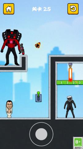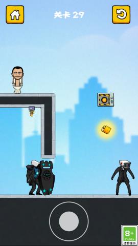 《智慧画线闯关》是一款以马桶人作为主角的休闲益智类闯关游戏,采用了幽默搞怪的卡通风格,呈现出独特且趣味十足的角色造型。玩家通过滑动手指绘制行进路线,操控马桶人沿着路线移动,并自动攻击沿途的监控人守卫。游戏设计了多种障碍和敌人配置,玩家需要巧妙规划行进路线,避开敌人的攻击并收集有用的道具,体验一场充满策略与成就感的闯关之旅。