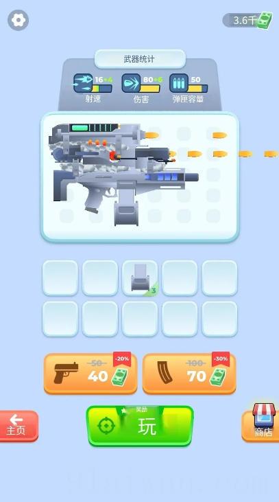 1、利用无限金币可解锁和升级武器配件,提升射速、伤害、弹容量,然后点击【开始】按钮进入战斗。