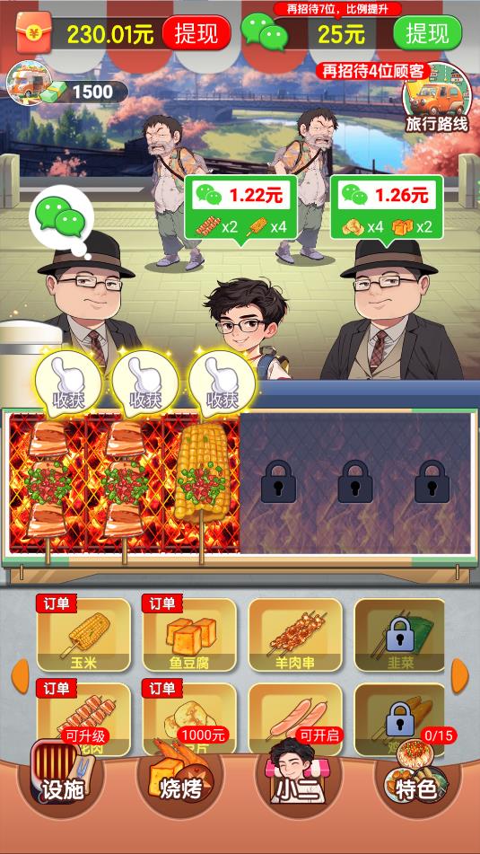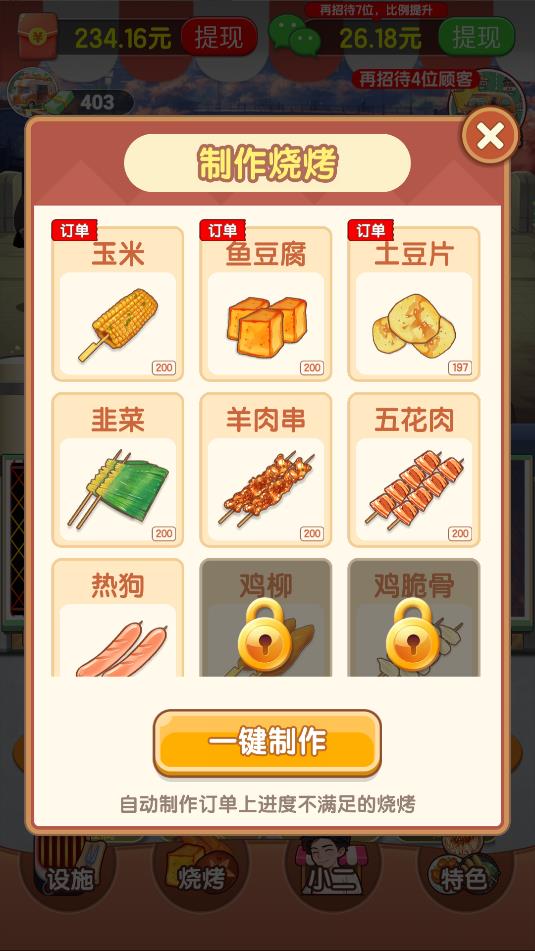 2、制作的订单一完成,可点击收获来提交订单获得奖励,奖励可解锁更多的食品种类。