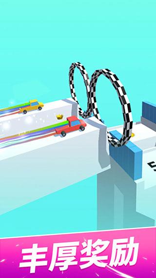 2、遇到蓝色方块障碍,根据间距滑动调整车轮大小,保证赛车平稳通过。