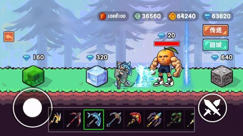 1、经典横版模式能快速上手,通过横版滑动操控角色前往未知区域采集,轻松获取丰富矿产资源。