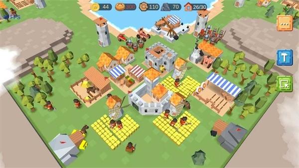 2、中世纪风情扑面而来,农民戴着尖顶帽挥锄头,骑士穿着盔甲冲锋陷阵。不同兵种有专属造型和武器,升级后外形还会变得更拉风。