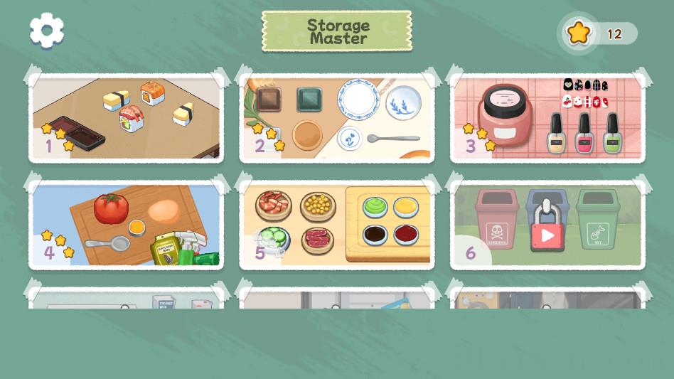 3、包含多样化的收纳场景和任务设计,涵盖卧室、厨房等多种生活场景,每个场景都有独特的收纳挑战。