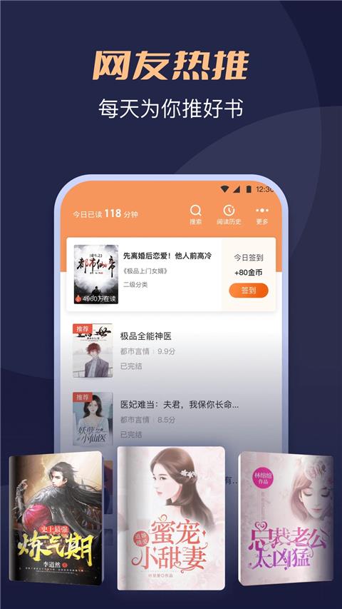 2、页面每天推荐,书城精彩不断,永久不书荒。