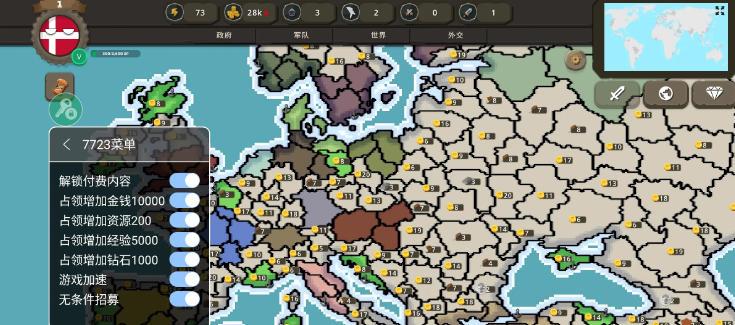 1、内置菜单提供多项实用功能,可以一键补充资源、解锁军队,让新手玩家也能快速上手体验高阶玩法。