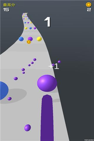 2、操控紫色球体,收集路径上的紫色小球,获取分数。