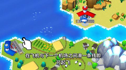 1、根据指示在飞机与下一个机场之间滑一条线,让飞机起飞。