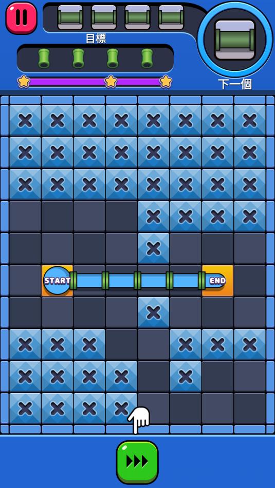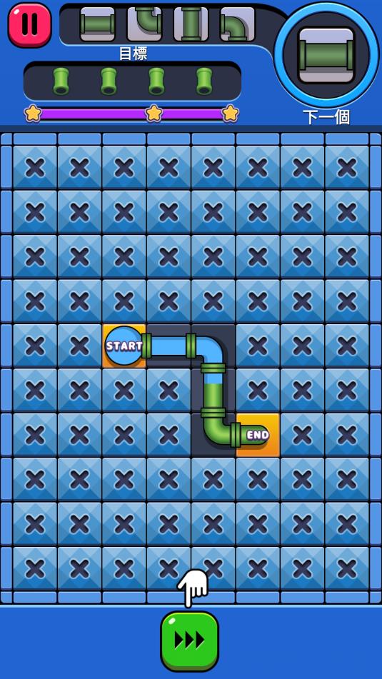 2、游戏中,分别有起点和终点,点击中间的空白处,把管道安装上,使起点和终点可以相连接。