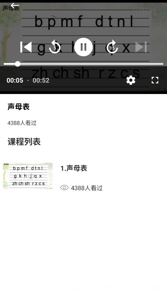 2、拼音字母表,以视频教学为教材,可以跟着视频学习跟读。