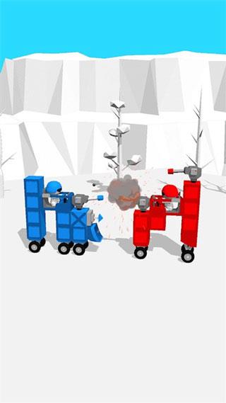 3、驾驶组装好的卡车,与红色敌方卡车战斗。