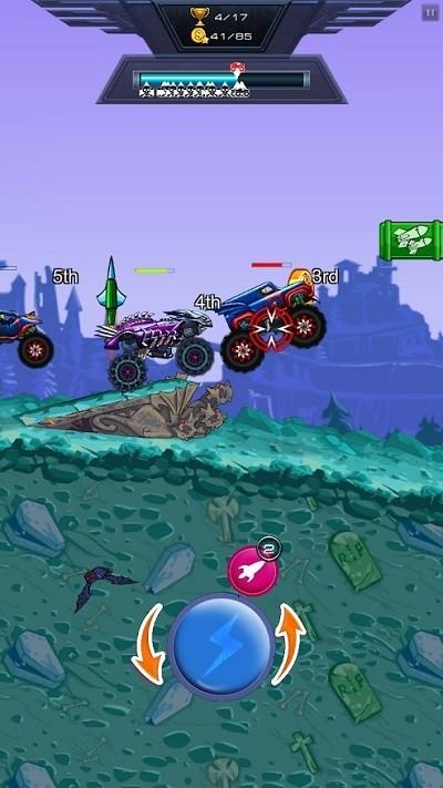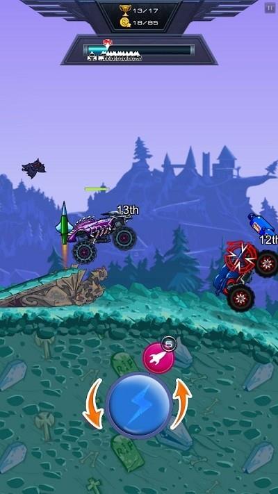 3、利用加速前后转向火箭功能按钮,调整车辆速度与状态,向敌人发起攻击,完成杀敌任务。