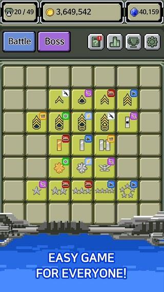 《军衔徽章》是一款策略休闲类手游,采用经典的像素画风,唤起玩家的怀旧情感。在游戏中,玩家将扮演一位最高指挥官,通过招募士兵并合成徽章来逐步提升军衔,从二等兵晋升至上将。游戏的合成玩法简洁直观,玩家只需将相同的徽章拖动合并,便可获得更强的士兵,并提升火力。战斗模式则别具一格,类似弹珠游戏,玩家通过拖拽瞄准并松手发起攻击,消灭敌人后可以获得丰厚的黄金奖励。丰富的任务系统提供了多样的挑战,奖励也十分丰厚,极大增强了游戏的沉浸感。这款游戏非常适合喜欢合成与策略玩法的玩家。