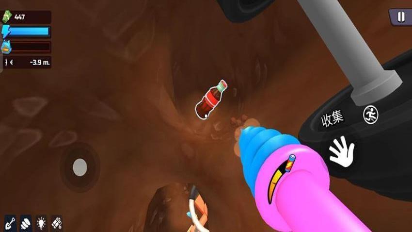 3、以挖掘为核心动作,通过点击滑动或重力感应控制工具探索。