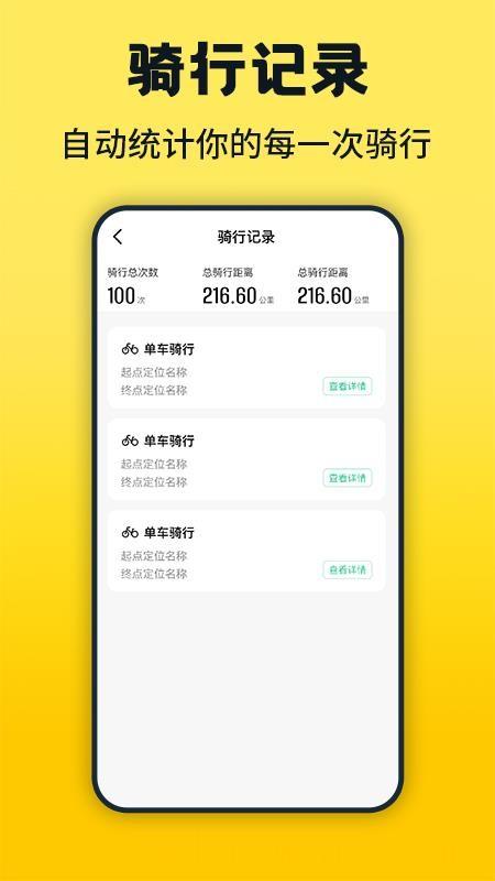 1、骑行记录数据直观,次数、距离、时长一目了然,便于骑行者复盘总结。