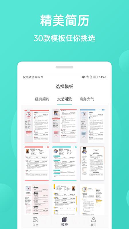1、提供清新经典个性等多风格免费模板,支持收藏常用模板,填写个人资料即可快速打造个性化简历,适配不同求职场景需求。
