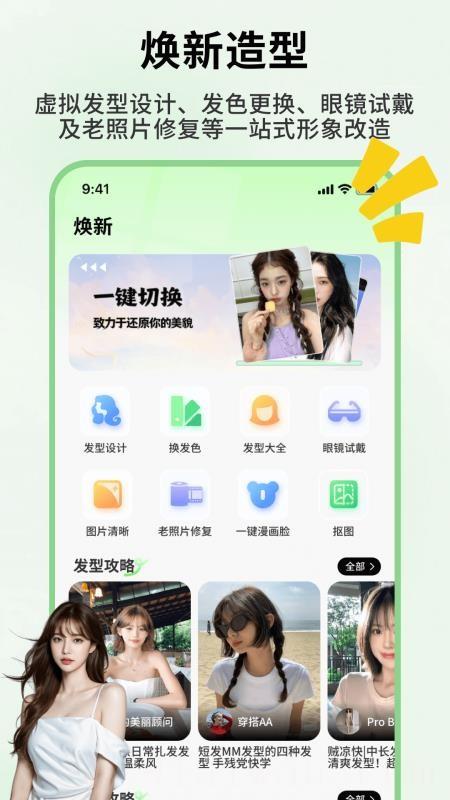 1、这款软件将发型设计与多媒体处理结合,功能全面,不仅能帮助用户找到合适的发型,还能处理图片和视频,实用性很强。