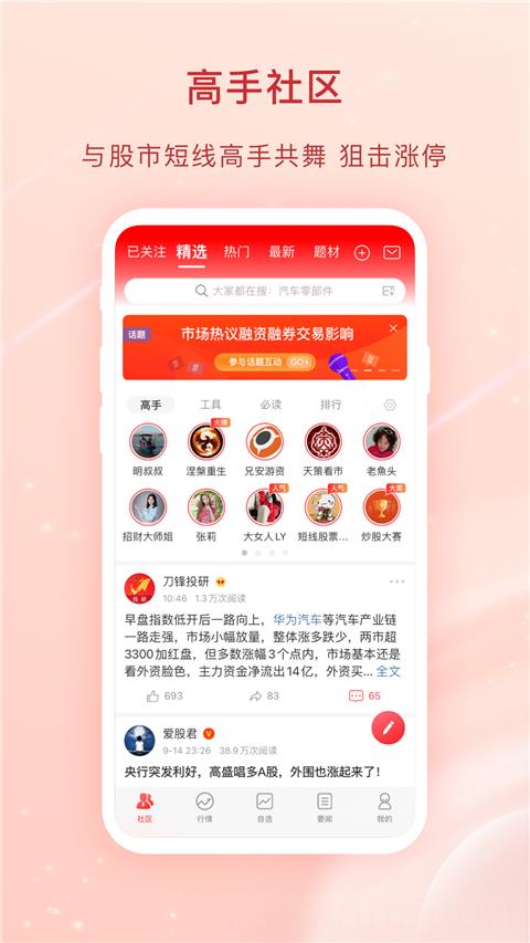 1、构建专业投资者交流社区,支持与实战高手实时互动,盘中分享操作思路与市场观点,获取即时投资指导。