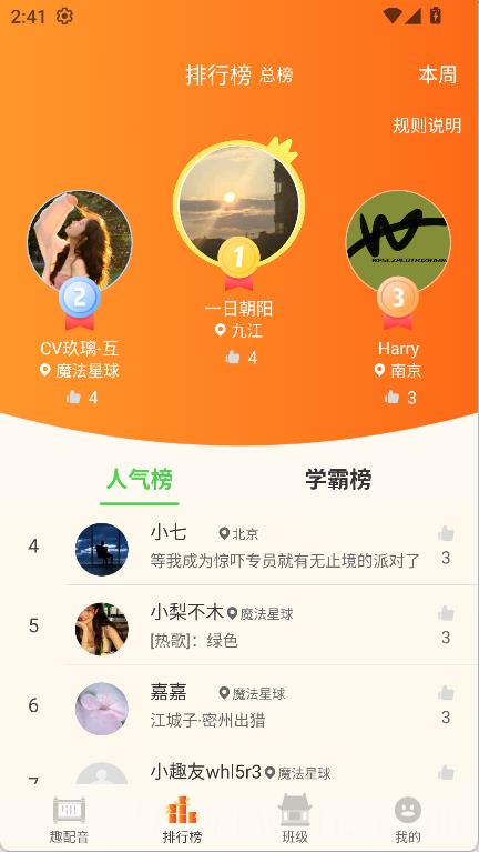 3、设有榜单与挑战活动,可参与朗读比拼与配音展示,提升学习趣味性与参与感。