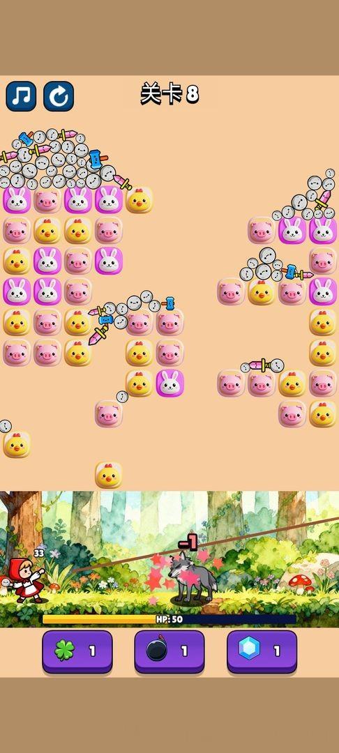 1、战斗消除的创新玩法让人耳目一新,每消除一组动物都能让小红帽获得攻击机会,玩起来很有成就感。