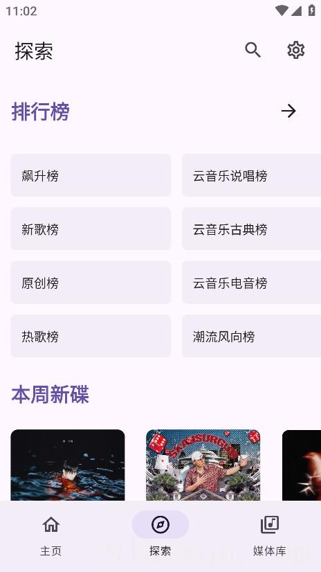 2、在探索功能页面,点击【飙升榜】,进入飙升榜歌单页面。