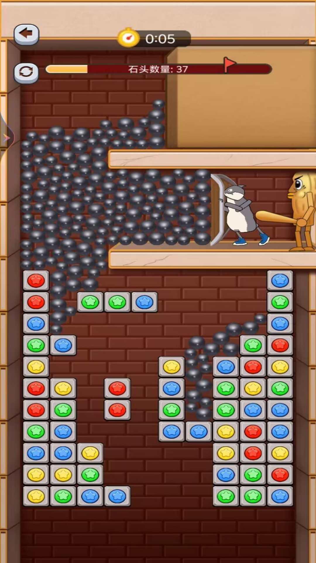 3、快速消除方块,控制石头下落速度,避免角色被掩埋。