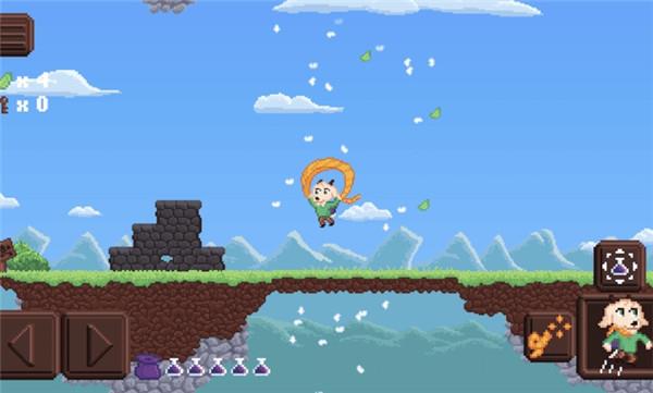 1、直观操作控制方案:左侧虚拟摇杆控制移动方向,右侧分区设置跳跃与绳索及药水按钮,布局清晰合理且响应灵敏,轻松上手各类动作。