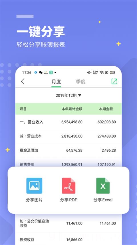 3、自动生成多种专业财务报表,包括资产负债表、利润表与现金流量表等,直观展示财务状况与经营成果的全貌。