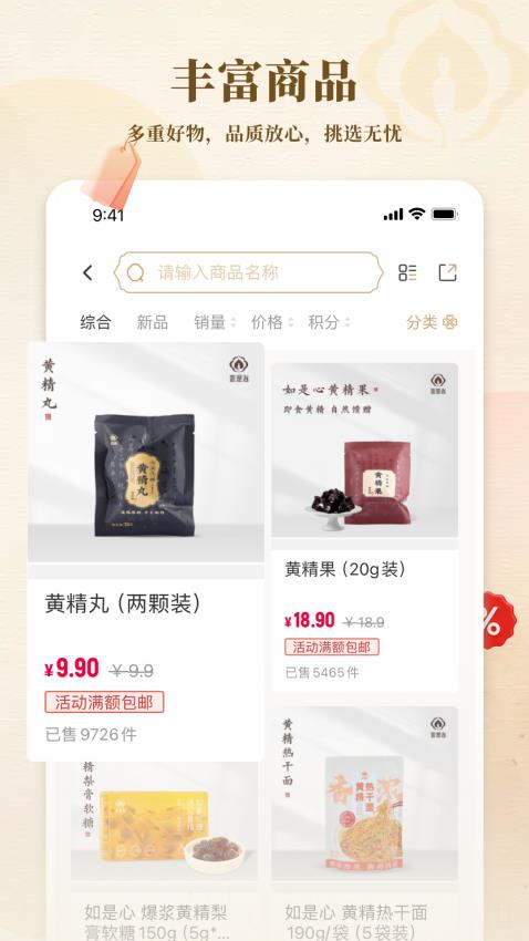 3、找到“臻黄精脯”查看详情参与满额包邮活动。