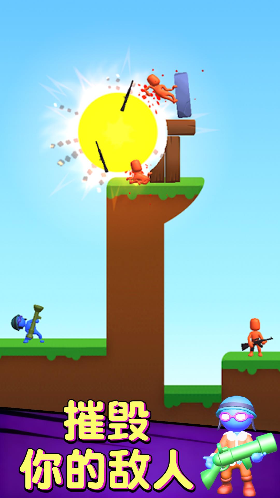 5、拖动角色调整瞄准角度预判敌人位置,释放武器精准攻击并利用地形优势快速击败对手完成挑战。