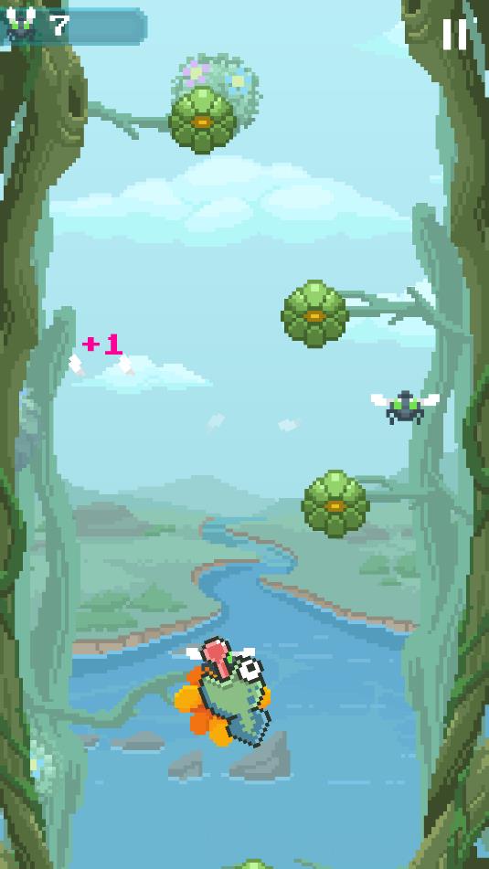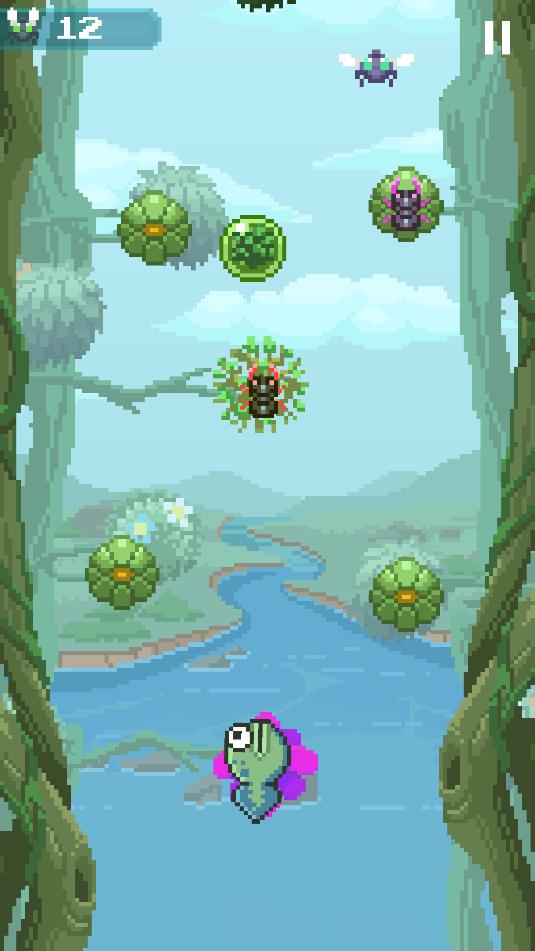 1、像素画面简约清新,蝌蚪吐舌攀爬的动作设计生动,视觉风格贴合休闲冒险主题,辨识度高。