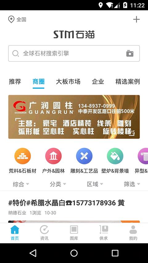 3、切换到底部【供求】,选【求购】等标签,浏览石材供需信息,找匹配资源。