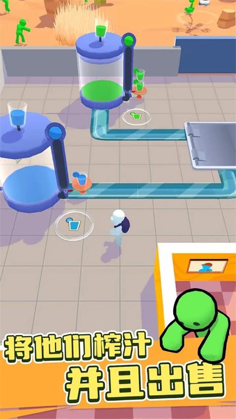 《僵尸榨汁达人免广告》是一款充满创意与幽默感的休闲经营游戏,整体玩法轻松有趣,十分解压。玩家将化身为一家独特榨汁店的老板,用天马行空的方式捕捉造型各异的僵尸,并将它们投入机器中制作成色彩鲜艳的专属果汁。通过售卖这些奇妙饮品,你可以不断积累资金,解锁更多设施,升级自己的店铺。