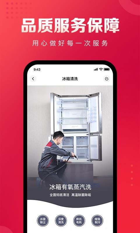 1、提供全品类家电清洗服务,不限产品品牌且价格完全透明,用户可以通过在线预约系统自主选择服务时间与具体项目。