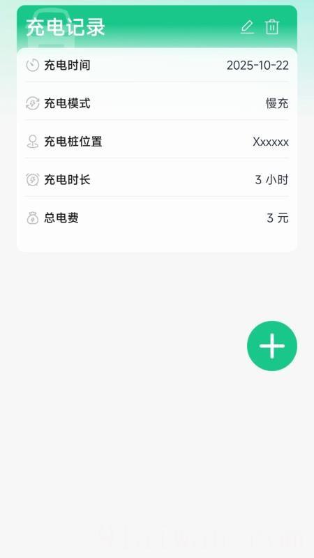 3、在记录板块,新增充电记录,填写充电日期、模式、单价等信息并保存。