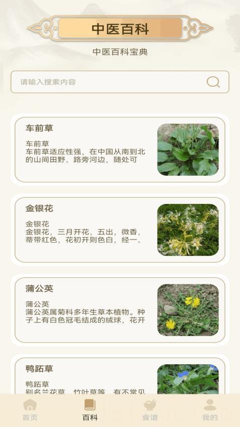 3、板块设置实用,整合中医百科与食谱板块,既提供草药知识查询,又助力草药在饮食中的应用,覆盖知识学习与实际应用场景。