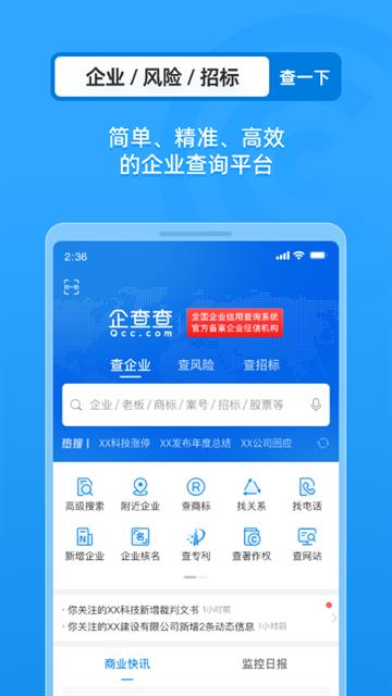 是一款服务大众的企业信息查询工具,方便用户按多种维度(企业名称,法人,股东及诉讼)实时查询企业相关的工商登记信息,股东信息,投资人信息,涉诉信息, 失信记录, 知识产权, 企业年报,拥有商标,主要人员信息,变更记录等信息。 用户同时可以针对企业进行评价和收藏。该工具目前覆盖全国各省的企业信息。