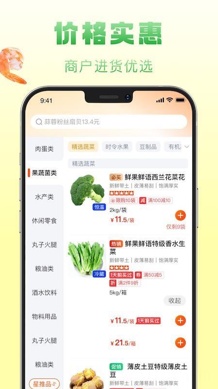 5、推出多元优惠采购方案与低价食材专区,结合批量采购折扣与组合套餐,助力餐饮门店降低食材成本提升盈利空间。