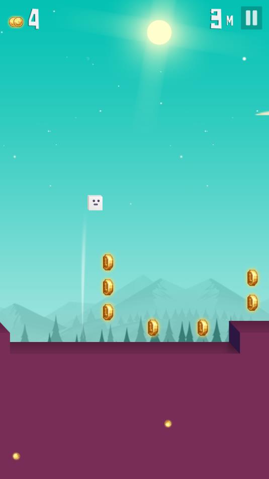2、游戏中,小方块会自动向前跳跃,点击屏幕或按住屏幕可以让小方块进行大幅度跳跃。