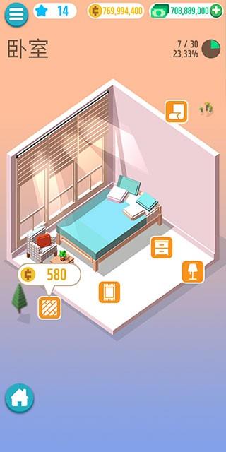 2、丰富家具装饰资源,支持自由选择搭配,从卧室到健身房,逐步解锁多样场所打造专属空间。