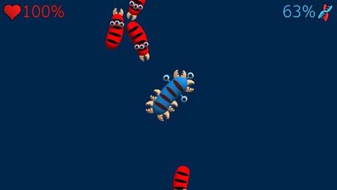 3、移动生物触碰绿色资源,积累进化所需的【DNA】进度,同时避开其他生物的干扰。
