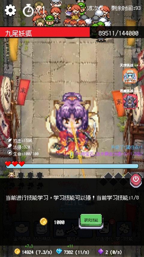 4、升级后会获得属性点,可选择加强钻石、金币或攻击速度,根据战斗输出需求或资源积累需求分配,提升对应收益。