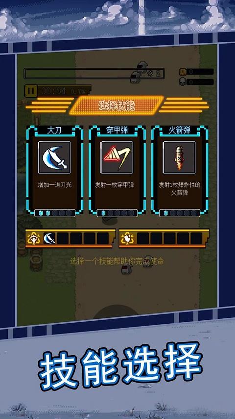 关卡采用随机生成机制,途中可收集晶体提升实力;即使在战斗中失败,也能依靠装备强化实现持续成长。配合未来科技风格的场景设计与华丽特效,游戏带来沉浸式的割草爽感与充满策略深度的闯关体验。