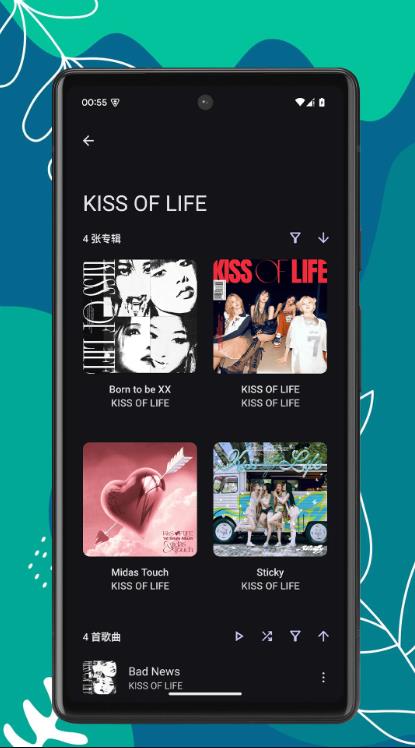 1、音乐分类标签区分明确,歌曲专辑等选项直观呈现,便于快速切换音乐管理维度,提升音乐查找与筛选的效率,适配不同的音乐整理需求。