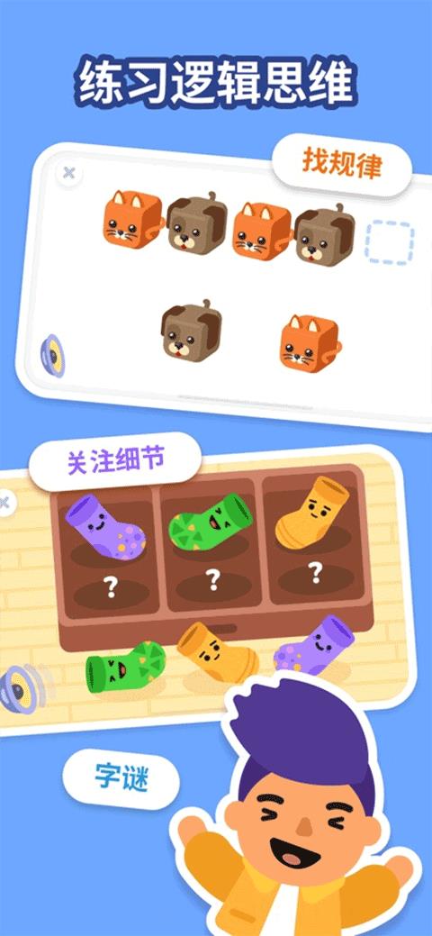 LogicLike是一款专为儿童和青少年设计的益智早教应用,致力于为孩子们打造一个轻松愉快的教育场景。该应用以寓教于乐为核心,通过可爱的动画和生动的配音,营造出轻松愉悦的学习氛围,帮助孩子们提升逻辑思维和推理能力。