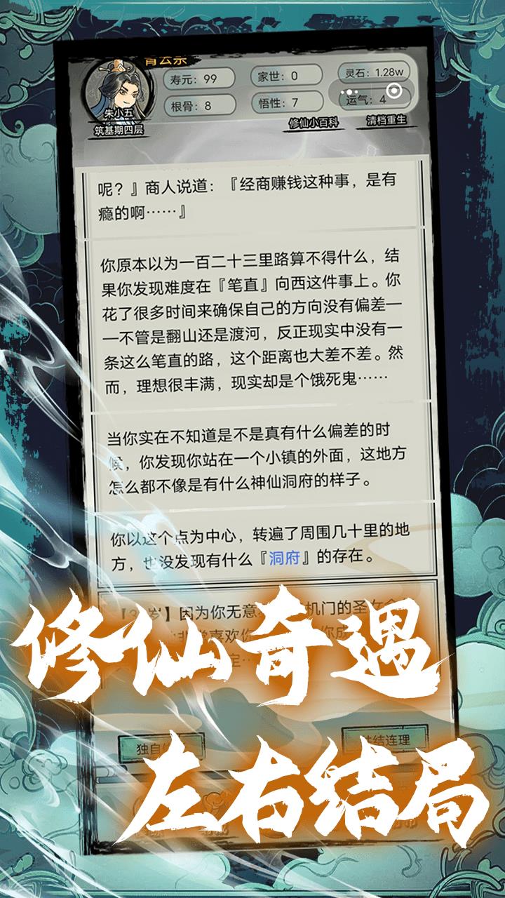 全程无广告干扰,纯文字的呈现方式带来更加专注的代入感。属性养成方面则更考验策略布局,任何薄弱环节都可能影响后续挑战的难度,让整个修仙之旅更加充满深度与思考。
