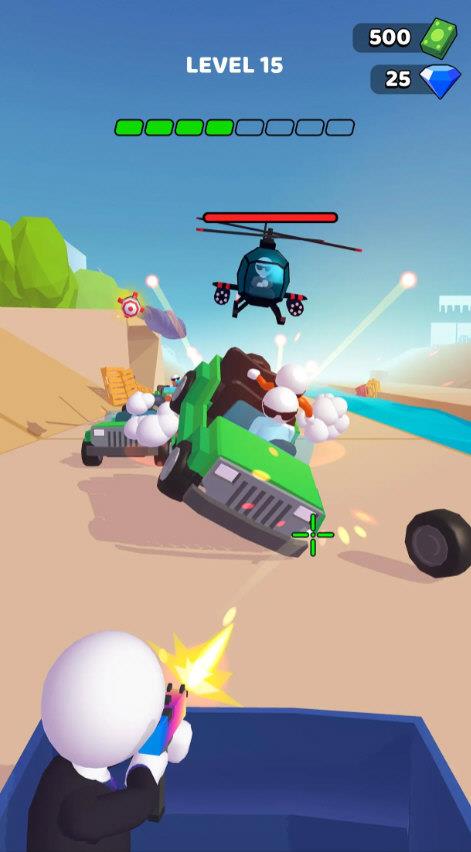 《公路神枪手》是一款让人瞬间热血沸腾的高速追击类射击游戏。驾驶你的改装战车在公路上与敌方车辆激烈交锋,各类重火力武器任你使用,从机枪到火箭筒一应俱全,射击时迸发的火花与冲击感十足的反馈让战斗更加过瘾。