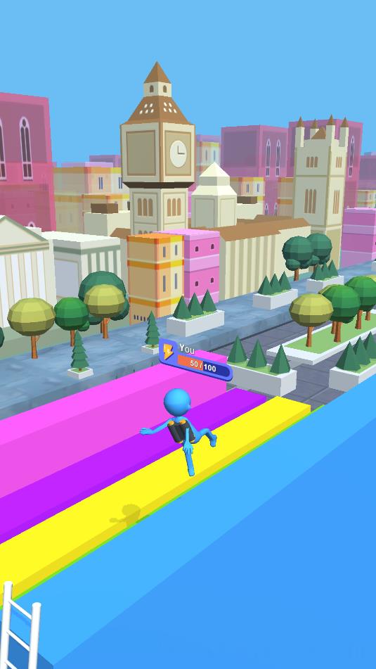 1、玩法特色:以爬梯为核心,搭配障碍跨越、道具使用等玩法,赛道设置多样机关,需搭建梯子、精准跳跃完成向终点的推进。