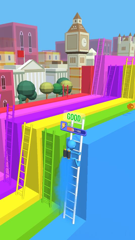 1、易上手优势:核心操作仅涉及梯子搭建与跳跃,无复杂规则与操作门槛,新手可快速掌握并投入游戏。