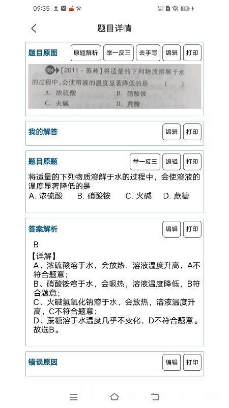 2、具备原题解析功能,精准定位题目并解析,还可通过举一反三模块进行拓展练习。