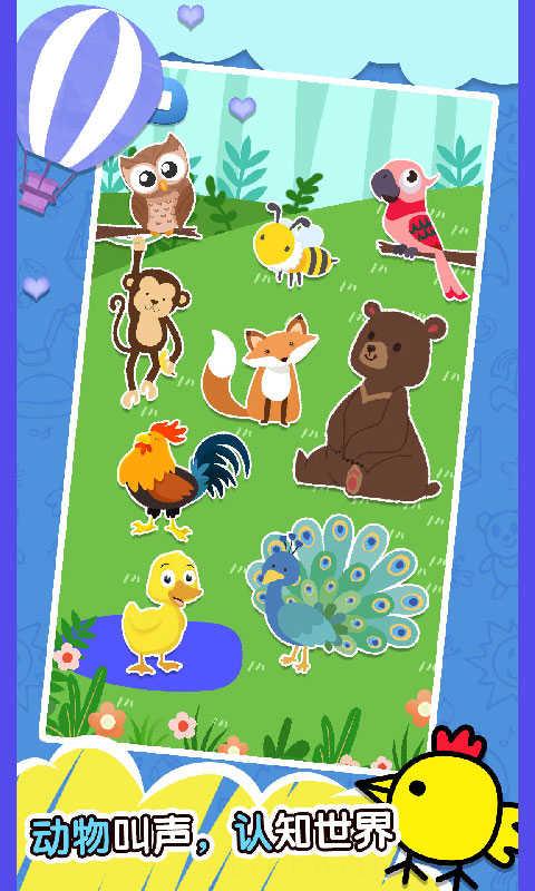 2、精心收录丰富动物叫声合集,每类叫声搭配对应动物形象,从听觉维度帮助小朋友认识动物,加深对不同动物的认知与记忆。